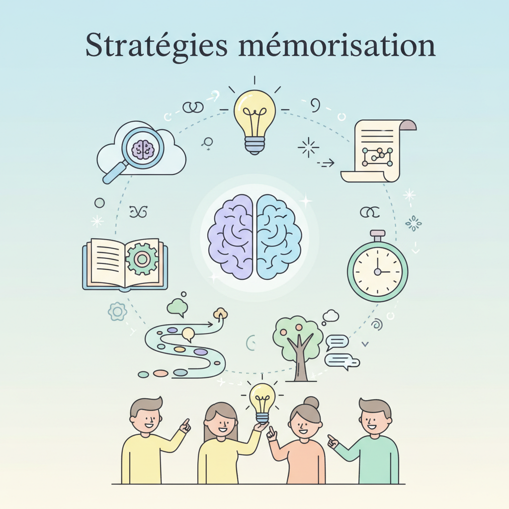Exemple : Pour retenir une règle de grammaire, créez une phrase farfelue dont chaque mot commence par la même lettre que la règle. Dessinez une frise chronologique pour les dates clés, chaque événement ayant une couleur ou un petit pictogramme.